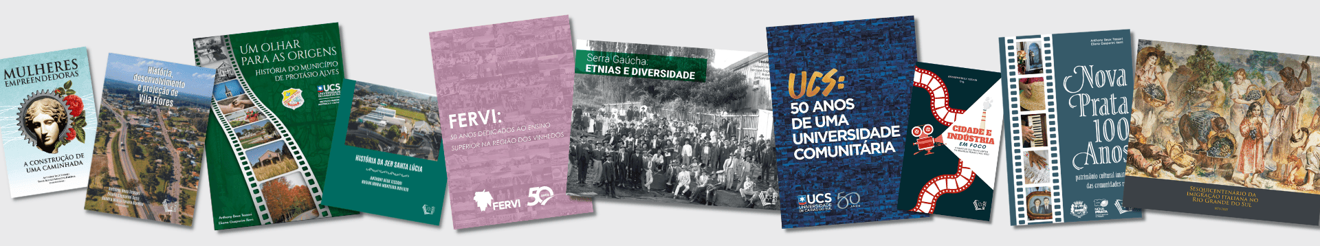 Conheça os livros mais recentes produzidos pelo IMHC-UCS, compreendendo as etapas de pesquisa histórica, seleção e digitalização de documentos históricos, produção de fontes orais, e escrita da narrativa. A edição das obras, com os serviços de editoração, diagramação, e impressão, é realizada pela Editora da Universidade de Caxias do Sul - Educs.