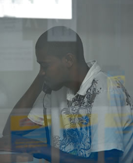 | Celulares e cabines telefônicas diminuem a distância entre Caxias e Senegal. |