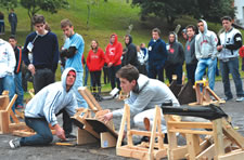 As catapultas são mecanismos de cerco que utilizam uma espécie de braço para lançar um objeto a uma grande distância. No Rally, os participantes precisavam construir um experimento que lançasse o objeto mais longe ganhava.