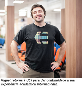 Na Cidade Universitária, em Caxias do Sul, Miguel cursou nove disciplinas em cursos na área de Ciências Exatas e Tecnologia entre agosto e dezembro de 2012, quando retornou para sua terra natal. Passados alguns meses, ele percebeu a necessidade de continuar seus estudos em terras brasileiras. "A Espanha continua com muitos problemas econômicos. Entendi que deveria voltar e dar continuidade ao meu curso na UCS, além de aprimorar os meus conhecimentos em língua portuguesa", comenta.