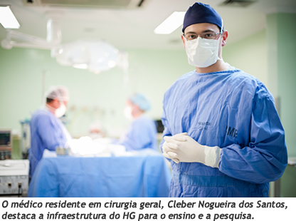 Cleber aponta que a presença dos preceptores é constante junto aos residentes e que existe a possibilidade de estágio em todas as áreas cirúrgicas (Cirurgia de Cabeça e Pescoço, Coloproctologia, Cirurgia Digestiva, Urologia, Cirurgia Oncológica, Cirurgia Pediátrica, Cirurgia Plástica, Cirurgia Torácica, Cirurgia Vascular). "Essas características qualificam e diferenciam a Residência Médica do Hospital Geral e propiciam um excelente cenário para o ensino e treinamento médico, contribuindo para a formação de especialistas qualificados", enfatiza. Os programas de residência médica reúnem 64 médicos residentes no hospital. "Hoje temos onze programas de residência médica e estamos aguardando a aprovação de outros. Nossos professores, a maioria mestres e doutores, e a infraestrutura do HG fazem com que o residente possa finalizar sua especialização com êxito e qualidade", afirma o professor Petrônio.