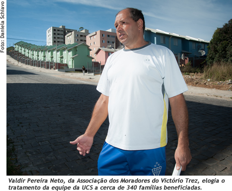 E foi por meio desse projeto que uma equipe de professores e alunos da UCS, durante três anos, organizou a transferência de 346 famílias do bairro Fátima Baixo, em Caxias do Sul, que foram reassentadas no Loteamento Victório Trez. A vocação comunitária e o histórico de ações sociais que a UCS promove em diferentes áreas foram essenciais para que essa equipe pudesse interagir com as pessoas beneficiadas com uma nova perspectiva de vida.