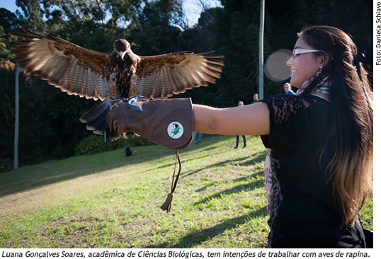 Entre os participantes do curso estava Luana Gonçalves Soares, acadêmica de Licenciatura e Bacharelado em Ciências Biológicas. Ela sempre se interessou pela área de zoologia, pela beleza dos animais e por sua complexidade. Prova disso é a sua curiosidade pelas aves de rapina. "Desde que entrei na UCS assisto vídeos, leio livros e reportagens sobre essas aves. Gosto tanto dessa área que estou fazendo o meu Trabalho de Conclusão de Curso (TCC) sobre o assunto."