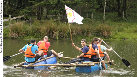 Na sala de aula, livros, cadernos e notebooks são materiais que fazem parte da rotina dos alunos da Especialização em Gestão Estratégica e Negócios do Campus Universitário da Região dos Vinhedos, em Bento Gonçalves. Esses materiais, no entanto, foram substituídos numa aula especial que ocorreu ao ar livre, na Fazenda Sonho Meu, em Canela, num sábado do mês de abril. Tonéis de plástico, pedaços de madeira e cordas foram utilizados numa das tarefas propostas aos alunos, que foram divididos em equipes. O objetivo era produzir uma balsa para atravessar um lago com os componentes do grupo de uma ponta a outra, em segurança. A tarefa também incluiu a criação de uma bandeira com a identidade da equipe, além da criação de um hino. O aluno André Luis Teixeira de Matos, 35 anos, que atua no departamento de manutenção da empresa Concresul Britagem Ltda., de Bento Gonçalves, afirma que essas ações têm muito a agregar para a carreira profissional. "É o momento de experimentar formas diferentes de tomadas de decisão. Através da participação no grupo de trabalho, desenvolvemos aptidões para a elaboração de estratégias de resolução dos desafios apresentados, aprendemos a ouvir propostas dos colegas, além de aceitar as diferenças de opiniões", avalia.