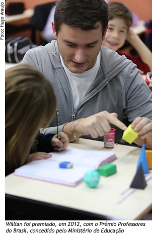 Na aula de revisão de conteúdos sobre geometria, com um quadrado de cartolina na mão, o professor Willian Daniel Hahh Schneider, 24 anos, pergunta aos alunos do terceiro ano da Escola Municipal Catulo da Paixão Cearense, em Caxias do Sul: "O que são vértices?" Os pequenos, apressadamente, levantam o dedo para responder: "São as pontas!", "Ligam as arestas!" Na parede da sala de aula, entre outros trabalhos coloridos, estão expostas figuras montadas pelos alunos unindo diferentes formas geométricas. É nesse clima que ocorrem as aulas de Willian. O aprendizado flui por meio do lúdico, do incentivo à curiosidade. E os alunos saem ganhando, pois têm liberdade para imaginar e interagir.