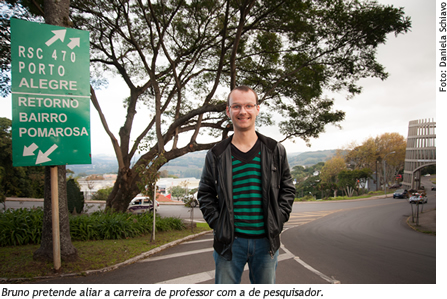 A curiosidade de Bruno fez com que descobrisse, por exemplo, o significado do nome do Bairro Pomarosa. Até chegar à última versão da origem do nome, várias entrevistas foram realizadas. A primeira versão dava conta de que o nome significava "pomar de rosas". Depois veio a sugestão "pomo cor de rosa", sendo pomo sinônimo de maçã. No bairro - popularmente chamado de Vinagreira -, havia uma empresa produtora de vinagre de maçã. Parecia convincente. No entanto, Bruno descobriu que Pomarosa nada mais era do que a junção das iniciais dos sobrenomes dos proprietários da tal empresa produtora de vinagre: Poletto, Marcon, Ross e Sandrin. Um conjunto de investigações como essa será a base da dissertação de mestrado de Bruno. "A pesquisa é muito importante para quem quer seguir a carreira de professor", avalia o mestrando, que é bolsista da Capes e que sonha em ser docente universitário. "Ser professor é mais do que passar conhecimentos, é preparar para a vida", resume.