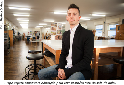Filipe acredita que o graduado em Licenciatura não deve limitar-se ao trabalho em sala de aula. Ele afirma que existem outros campos, como a curadoria artística. O estudante está projetando, por exemplo, a criação de um coletivo com participação de profissionais de diversas áreas, como jornalistas, designers e outras pessoas que tenham conteúdo para compartilhar. O projeto de trabalho de conclusão do curso em Licenciatura em Artes Visuais está sendo construído nesse sentido: o acadêmico quer pesquisar alternativas metodológicas educativas para a interação com a arte não somente em sala de aula. Os primeiros testes começarão a ser feitos nos estágios curriculares deste semestre, com alunos de Ensino Fundamental e Médio. "O educador na área de artes deve falar de estética com um olhar filosófico, incitando o pensamento das pessoas", ressalta o acadêmico, que pretende continuar sua formação em um curso de mestrado.