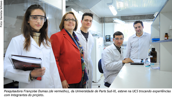 O projeto "Novos compostos organometálicos, uma visão terapêuticafármacos em potencial" ocorre por meio de uma colaboração internacional entre a UCS e a Universidade Paris Sud-XI. O projeto, que teve início no começo de 2013, tem duração de três anos e possui apoio da Capes - edital Programa Pesquisador Visitante Especial -, ligado ao programa governamental Ciência sem Fronteiras. O objetivo desse edital é promover a interação entre universidades e grupos de pesquisa nacionais com pesquisadores renomados de fora do Brasil. Foi dessa forma que a pesquisadora Françoise Dumas veio à UCS em abril deste ano, quando permaneceu por um mês com os pesquisadores do Instituto de Biotecnologia. Na sua estada no Brasil, realizou ainda palestras em universidades gaúchas e paulistas. Na UCS, participou do dia a dia no Laboratório de Produtos Naturais e Sintéticos, planejando e executando experimentos.