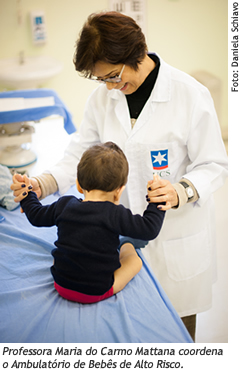 A professora Maria do Carmo Mattana, neuropediatra do Ambulatório de Bebês de Alto Risco, explica que as crianças prematuras têm tendência natural de apresentar intercorrências, necessitando frequentemente de atendimento em UTI Neonatal (em Caxias do Sul, o SUS conta com essa unidade no Hospital Geral e no Hospital Pompéia). "Ao saírem da UTI Neonatal, essas crianças são encaminhadas ao Ambulatório de Bebês de Alto Risco, onde recebem um atendimento multidisciplinar. As mães têm um apoio global, no ponto de vista social, científico e médico. O acolhimento aos bebês, dependendo da patologia, é acompanhado em diversas áreas", explica.