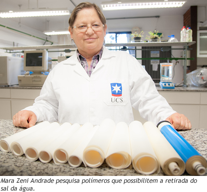Durante o doutorado em Química, desenvolvido na Itália, a professora Mara Zeni Andrade, do Centro de Ciências Exatas e Tecnologia, iniciou seus estudos com membranas poliméricas. Ainda na década de 1990, a professora passou a pesquisar na UCS polímeros que possibilitassem a retirada do sal da água, por um sistema de alta pressão denominado Osmose Inversa (RO).